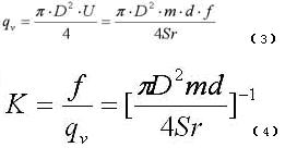 式中,m為旋渦發(fā)生體兩側弓形面積與管道橫截面面積之比;D為表體通徑;d為旋渦發(fā)生體迎面寬度;f為旋渦的發(fā)生頻率;U1為旋渦發(fā)生體兩側平均流速;Sr為斯特勞哈爾數(shù);U為被測介質流的平均速度。