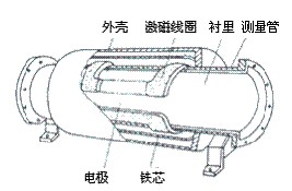 智能防腐電磁流量計結(jié)構(gòu)及量程 防腐型電磁流量計由傳感器和轉(zhuǎn)換器組成。而傳感器主要組成部分是:測量管、電極、勵磁線圈、鐵芯與磁軛殼體。傳感器安裝在測量管道上,轉(zhuǎn)換器可以與傳感器組合連接在一起稱為一體型電磁流量計,轉(zhuǎn)換器被安裝在離傳感器30米內(nèi)或100米內(nèi)的場合,兩者間由屏蔽電纜連接稱為分體式電磁流計。