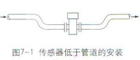 智能電磁流量計(jì)傳感器安裝方向可水平、垂直或傾斜。因?yàn)榱髁坑?jì)在工作時(shí),始終要求測(cè)量管內(nèi)充滿被測(cè)介質(zhì)。水平安裝時(shí),為了確保這一點(diǎn),必要時(shí)傳感器安裝位置的標(biāo)高可以略低于管道的標(biāo)高,如圖7-1,或使傳感器的下游具有足夠的背壓,如圖7-2。