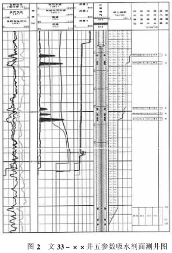 由電磁流量計(jì)組成的吸水剖面測(cè)井西路,不受同位素污染及同位素分配不到位的影響,可計(jì)算遇阻層的吸水量,可定量識(shí)別出“大孔道地層”和漏失層,從而大大提高了吸水剖面測(cè)井資料的解釋精度。