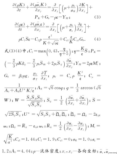 在天然氣的采集、處理、儲存、運輸和分配過程中,需要數(shù)以百萬計的流量計,它既是天然氣供需雙方貿(mào)易結(jié)算的依據(jù),也是生產(chǎn)部門用氣效率的主要技術(shù)指標(biāo),因此對流量計測量準(zhǔn)確度和可靠性有很高的要求。 氣體渦輪流量計屬于速度式流量計,是應(yīng)用于燃?xì)赓Q(mào)易計量的三大流量儀表之一。由于具有重復(fù)性好、量程范圍寬、適應(yīng)性強(qiáng)、精度高、對流量變化反應(yīng)靈敏、輸出脈沖信號、復(fù)現(xiàn)性好和體積小等特點,氣體渦輪流量計近年來已在石油、化工和天然氣等領(lǐng)域獲得廣泛的應(yīng)用。 隨著渦輪流量計在管道計量領(lǐng)域的廣泛使用,天然氣管道輸送過程中的能耗成為不容忽視的問題,而天然氣管道輸送過程中的壓力損失是產(chǎn)生能源消耗的主要原因之一。為保證天然氣能順利輸送至用戶端,就需要提高各壓氣站的輸送壓力并盡量減少管道輸送過程中的壓力損失,而各級管道上的計量流量計所造成的壓力損失占有很大比重。因此,氣體渦輪流量計的壓力損失研究對節(jié)能減排和推動我國燃?xì)庥嬃績x表產(chǎn)業(yè)的發(fā)展具有較好的推動作用。 近年來,越來越多的學(xué)者采用數(shù)值模擬仿真方法對渦輪流量計進(jìn)行研究,如XU、LIU、 等學(xué)者均通過數(shù)值計算形式模擬流量計內(nèi)部流動,并與實驗比較驗證了模擬結(jié)果的正確性。應(yīng)用S-A、標(biāo)準(zhǔn)k-ε、RNGk-ε、Realizable k-ε和標(biāo)準(zhǔn)k-ω這5種湍流模型對渦輪流量計進(jìn)行三維數(shù)值模擬,并將應(yīng)用各湍流模型得出的仿真儀表系數(shù)與實流標(biāo)定值進(jìn)行對比和分析,這對數(shù)值模擬計算選取湍流模型給出了一定參考。 目前,渦輪流量計的優(yōu)化主要通過改良其導(dǎo)流件、葉輪、軸承、非磁電信號檢出器等部件的結(jié)構(gòu)尺寸和加工工藝,來改善流量計測量氣體、高粘度流體和小流量時的特性。對降低渦輪流量傳感器粘度變化敏感度進(jìn)行了研究。SUN等采用了Standard k-ε湍流模型數(shù)值模擬口徑為15mm的渦輪流量計的內(nèi)部流動,結(jié)果表明壓力損失受到前端和后端形狀、導(dǎo)流體半徑、導(dǎo)流體的導(dǎo)流片和渦輪葉片厚度的影響.雖然對氣體渦輪流量計的流動進(jìn)行實驗測量和數(shù)值計算,發(fā)現(xiàn)前導(dǎo)流器的結(jié)構(gòu)變化對后面各部件內(nèi)的氣體流動速度梯度和壓力恢復(fù)也有明顯影響,使總壓力損失進(jìn)一步放大或減小,但對流量計的其它部件未進(jìn)行分析。本文將對一種型號氣體渦輪流量計各部件的壓力損失與流量的關(guān)系進(jìn)行分析研究,以提出其優(yōu)化思路。 1 渦輪流量計的基本結(jié)構(gòu)及工作原理 本文采用80mm口徑氣體渦輪流量計作為研究對象,對其進(jìn)行內(nèi)部流道的壓力損失數(shù)值模擬。 氣體渦輪流量計結(jié)構(gòu)示意圖如圖1。氣體渦輪流量計實物如圖2,其中圖2(a)為渦輪流量計實物圖,圖2(b)為渦輪流量計機(jī)芯葉輪實物圖。 氣體渦輪流量計的原理是,氣體流過流量計推動渦輪葉片旋轉(zhuǎn),利用置于流體中的葉輪的旋轉(zhuǎn)角速度與流體流速成比例的關(guān)系,通過測量葉輪轉(zhuǎn)速來得到流體流速,進(jìn)而得到管道內(nèi)的流量值。渦輪流量計輸出的脈沖頻率f與所測體積流量qv成正比,即 式(1)中:k—流量計的儀表系數(shù)。 根據(jù)運動定律可以寫出葉輪的運動方程為 式(2)中:J—葉輪的轉(zhuǎn)動慣量;t—時間;ω—葉輪的轉(zhuǎn)速;Tr—推動力矩;Trm—機(jī)械摩擦阻力矩;Trf—流動阻力矩;Tre—電磁阻力矩。 2 計算模型 2.1 數(shù)學(xué)模型 設(shè)定渦輪流量計數(shù)值模擬的工作介質(zhì)為空氣,流動處于湍流流動,數(shù)值模擬湍流模型采用Realizable K-ε模型,該模型適用于模擬計算旋轉(zhuǎn)流動、強(qiáng)逆壓梯度的邊界層流動、流動分離和二次流等,其模型方程表示為: ——各向流速平均值;a—聲速;μ—動力粘性系數(shù);υ—運動粘性系數(shù);K—湍流動能;ε—湍流耗散率;βT—膨脹系數(shù);ωk—角速度; —時均轉(zhuǎn)動速率張量;如不考慮浮力影響Gb=0,如流動不可壓縮, =0,YM=0。 2.2 流體區(qū)域網(wǎng)格劃分 使用Solidworks三維設(shè)計軟件依照實物尺寸對渦輪流量計各部件進(jìn)行建模及組裝,簡化主軸、取壓孔和加油孔等對流體區(qū)域影響較小的部分。 先對機(jī)芯部分做布爾運算得到純流體區(qū)域,然后對葉輪外加包絡(luò)體形成旋轉(zhuǎn)區(qū)域,在機(jī)芯進(jìn)出口前后均加上15倍機(jī)芯口徑的直管段,以保證進(jìn)出口流動為充分發(fā)展湍流。 全部流體區(qū)域包括前后直管段、葉輪包絡(luò)體以及機(jī)芯部分的流體區(qū)域。用Gambit軟件對三維模型進(jìn)行網(wǎng)格劃分,對流體區(qū)域中的小面和尖角等難以生成網(wǎng)格的部分進(jìn)行優(yōu)化和簡化處理,流體區(qū)域使用非結(jié)構(gòu)化混合網(wǎng)格,并對機(jī)芯流道內(nèi)葉輪等流動情況較復(fù)雜區(qū)域進(jìn)行了局部加密,如圖3。其中圖3(a)為機(jī)芯流體區(qū)域網(wǎng)格圖,圖3(b)為葉輪網(wǎng)格圖,整體網(wǎng)格總數(shù)量約230萬。 2.3 數(shù)值模擬仿真條件設(shè)置 數(shù)值計算時,為方便模擬結(jié)果與實驗結(jié)果的對