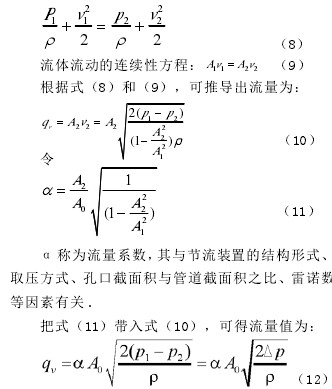 1 引 言 轉子流量計和差壓式流量計是工業上和實驗室中的流量計. 雖然都是測量流量的儀表,但是其原理卻大相徑庭,其流量基本方程的推導也不相同,因此,導致儀表的特點和適用場合也有所區別 . 2 流量計組成與流量測量原理 2.1 轉子流量計 轉子流量計,是由一個自下往上逐漸擴大的帶刻度的錐形管和一個置于錐形管內可以自由上下移動的轉子構成. 工作時,被測流體由錐形管下端進入,沿著錐形管向上運動,流過轉子與錐形管之間的環隙,再從錐形管上端流出 . 受流動流體帶動作用,轉子受到一個自下向上流體對轉子的動壓力,正好等于轉子在被測流體中的重力(即轉子自身的重力減去流體對轉子的浮力). 垂直安裝流量計時,轉子重心就在錐形管中心軸線上,轉子所受的三個力都平行于中心軸線 . 當受力平衡時,轉子就穩定在錐管內某一位置上 . 對于給定的轉子流量計,轉子的材料、大小和形狀都可確定,所以轉子在被測流體中的重力是已知的,只有流體對轉子的動壓力是隨流體流速大小而變化的 . 因此當流體流速變大或變小時,轉子受到的動壓力增大或減小,轉子將作向上或向下的移動,轉子與錐形管壁之間的環隙面積也發生變化,即流動截面積也發生變化,待變化到某一流速轉子受力平衡時,轉子就穩定在新的位置上 . 對于一臺給定的轉子流量計,轉子在錐管中平衡位置的高低反應了被測流體流經錐形管的流量大小 . 2.2 差壓式流量計 差壓式流量計由三部分組成,即由節流裝置、導壓管和差壓計 . 差壓式流量計是利用流體流動的節流原理來實現流量測量的.節流原理是流體在有節流裝置的管道中流動時,在節流裝置前后的管壁處,流體的靜壓力產生差異的現象 . 流動流體的能量有靜壓能和動能兩種形式.流體具有靜壓能是因為有壓力,具有動能是因為有流動速度,在一定條件下,這兩種形式的能量是可以相互轉化 . 根據能量守恒定律,在沒有外加能量的前提下,流體所具有的靜壓能和動能,再加上用以克服流體流動阻力的能量損失,其能量總和是相等的 . 圖 2 表示在節流裝置前后截面Ⅰ、Ⅱ及Ⅲ處流體壓力與速度的分布情況 . 流體在到達截面Ⅰ之前,以一定的流速 v1流動,此時靜壓力為 p1. 在接近節流裝置時,由于遇到節流裝置的阻礙,使靠近管壁處的流體受到節流裝置的阻擋作用,使部分動能轉化為靜壓能,使得節流裝置入口端面靠近管壁處的流體靜壓力升高,并且遠大于管徑中心處的壓力,因此節流裝置入口端面處產生一徑向壓差 . 在徑向壓差的作用下,流體產生徑向加速度,從而使靠近管壁處的流體質點的流動方向傾斜于管道中心軸線,出現縮脈現象.由于受到慣性作用,流束的最小截面并不在節流裝置的孔口處,而是經過節流裝置之后仍繼續收縮,到截面Ⅱ處流束達到最小,此時流速最大,即 v2,之后流束又逐漸擴大,至截面Ⅲ后完全恢復,流速逐漸降到原值,即 v3=v1. 由于節流裝置產生流束的局部收縮現象,使流體的流速隨之變化,即動能也跟著變化 . 根據能量守恒定律,表征流體靜壓能的靜壓力也要變化 . 在截面Ⅰ處,流體具有靜壓力 p1. 在截面Ⅱ處,流速增到最大 v2,靜壓力就降到最小 p2,而后又隨著流束的恢復而恢復 . 由于在節流裝置端面處流通面突然縮小,而節流裝置之后流通面積突然又擴大,使流體形成局部渦流,部分能量被消耗,同時流體流經孔板時,為克服摩擦力也需消耗能量,所以流體在截面Ⅲ處的靜壓力 p3不能恢復到原值 p1,而產生永久的壓力損失. 截面Ⅰ與Ⅱ處的壓差(δp=p1- p2)與流體在節流裝置前的流量有一一對應關系,只要測出節流裝置前后的壓差大小即可表示流量大小 . 2.3 總結 轉子流量計與差壓式流量計在工作原理上是不相同的 . 轉子式流量計,是在節流面積(如孔板流通面積)不變的條件下,以差壓變化來反映流量的大小;而差壓式流量計,卻是以壓降不變,利用節流面積的變化來測量流量的大小.即轉子流量計的測量原理可以簡化為:恒壓降、變節流;差壓式流量計的測量原理簡化為:變壓降、恒節流 . 3 流量方程推導 3.1 轉子流量計 轉子流量計中當轉子穩定時,對轉子進行受力分析: 其中:ρt為轉子的密度;ρf為流體的密度;V 為轉子的體積;Δp 為轉子前后的壓差(常數);A 為轉子的最大截面積 . 轉子和錐形管間的環隙面積相當于節流式流量計的節流面積,但它是變化的,并與轉子高度 h成近似的線性關系,因此,轉子流量計的流量可以表示為: 式中,ф 為儀表常數;h 為轉子浮起的高度 .由于轉子流量計在生產中進行刻度的時候,通常選擇在工業基準狀態(20℃,0.10133Mpa)下用水或者空氣進行標定的 . 所以,在實際使用時,如果被測介質的密度和工作狀態與刻度時的不一致,就必須對流量指示值按照實際被測介質的密度、溫度、壓力等參數的具體情況進行修正. ①液體流量測量時的修正 由于測量液體的轉子流量計是在常溫 20℃下用水標定的,根據式(1)可寫為: 式中,qv0為用水標定時的流量刻度;ρw是水的密度 . 如果被測介質不是水,則需要對流量刻度進行重新修正.如果被測介質的黏度和水的黏度相差不大,可以近似認為 ф 是常數,有 式中,qvf為被測介質的實際流量;ρf是被測介質的密度 . 式(5)和式(4)相除,整理后得: ②氣體流量測量時的修正 當采用轉子流量計進行氣體流量測量時,對其流量值也要進行修正,除了被測介質的密度進行修正之外,還需要對被測介質的工作溫