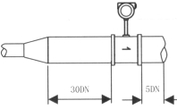 1.渦街流量儀表對(duì)安裝點(diǎn)的上下游直管段有一定要求,否則會(huì)影響介質(zhì)在管道中的流場(chǎng),影響儀表的測(cè)量精度。儀表的上下游直管段長度要求見圖3