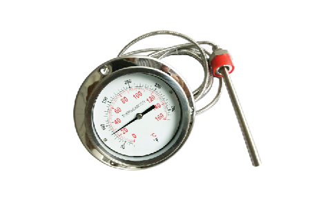利用感溫包中液體受熱膨脹而使彈性元件產(chǎn)生偏轉(zhuǎn)來(lái)帶動(dòng)度盤轉(zhuǎn)動(dòng)指示出被測(cè)介質(zhì)的溫度。