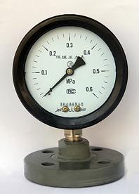 YTP防強腐全塑隔膜壓力表主要部件隔膜連接體采用PVS聚氯乙烯材料,膜片采用PTFE聚四氟乙烯制造,儀表殼體采用 NJ酚醛膜塑料,具有較好的防腐性能,適用于測量氯氣,鹽酸,硝酸等具有強烈腐蝕作用的氣體或液體的壓力。